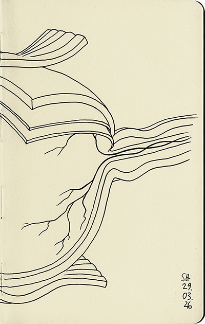 Das siebte und aktuelle Skizzenbuch. Numero eins, zwei, drei, vier, fünf und sechs liegen natürlich immer noch auf.