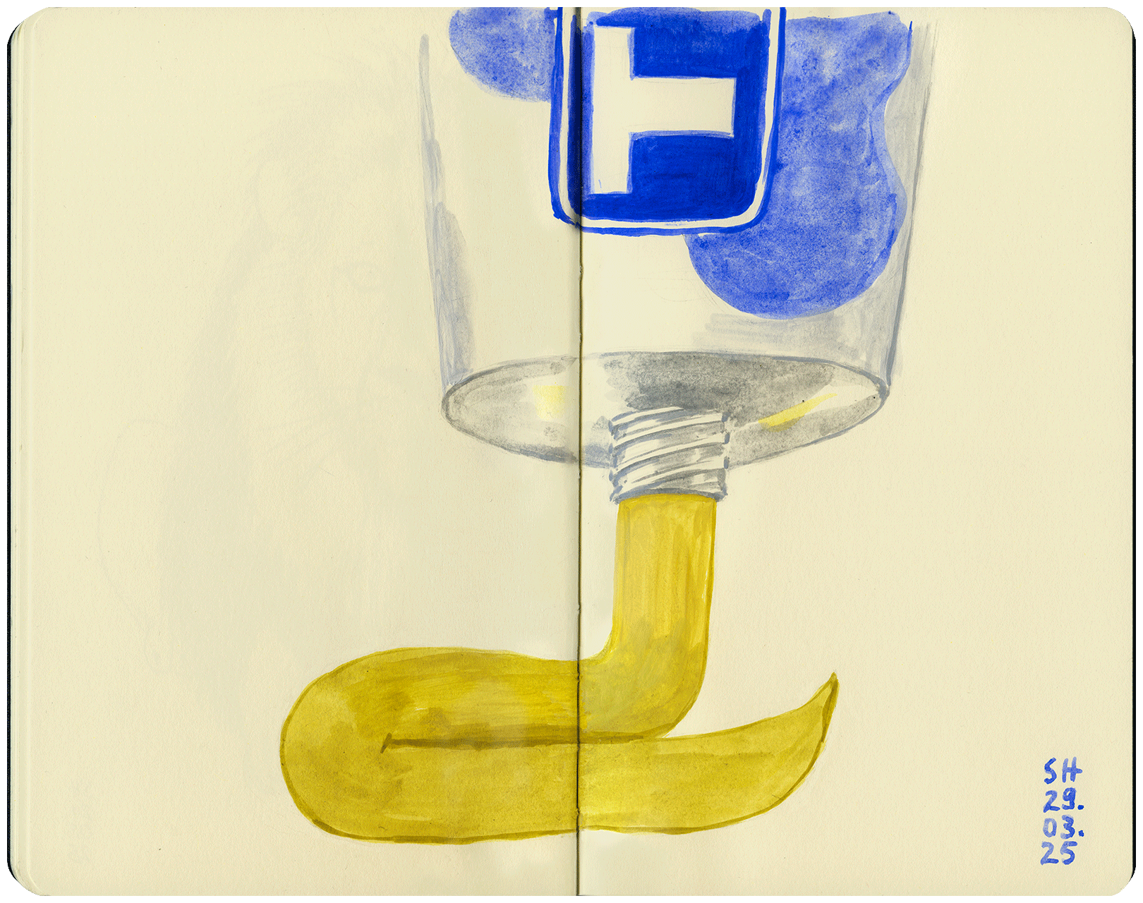 Tube, Send, mustard, moutarde, Acryl, Sibylle Heusser